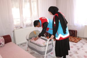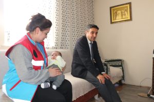 Karlıova ilçesinde Sosyal Yardımlaşma ve Dayanışma Vakfı’nca (SYDV) yürütülen ‘Hoş Geldin Bebek’ Projesi kapsamında ihtiyaç sahibi ailelerin yeni doğan bebekleri evlerinde ziyaret edilerek bebek bakım seti hediye edildi.